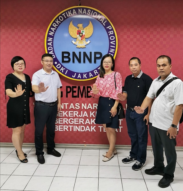 在印度尼西亞期間,我公司代表團(tuán)和由國家禁毒委員會(huì)副秘書長、中國禁毒基金會(huì)秘書長李憲輝率領(lǐng)的國家禁毒委代表團(tuán)一起參觀了印度尼西亞麗都國家禁毒中心所屬的禁毒培訓(xùn)中心、國家毒品實(shí)驗(yàn)室和禁毒康復(fù)中心,了解了印度尼西亞毒品預(yù)防教育、禁毒培訓(xùn)、毒品濫用監(jiān)測、和戒毒康復(fù)等工作情況。同時(shí)應(yīng)客戶邀請下,國家禁毒委同我公司貿(mào)易團(tuán)隊(duì)一起參觀了客戶公司,了解毒檢產(chǎn)品在印尼市場的銷售情況。