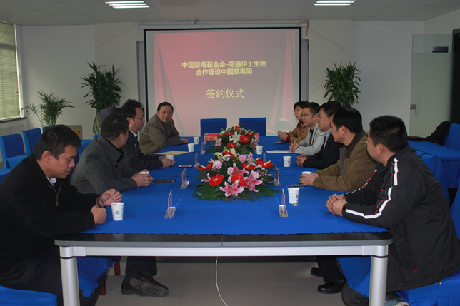 2013年12月7日上午,南通市伊士生物技術(shù)有限責(zé)任公司在伊士生物研究院會(huì)議室舉行了“中國(guó)禁毒基金會(huì)-南通伊士生物合作建設(shè)中國(guó)禁毒網(wǎng)簽約儀式”。中國(guó)禁毒基金會(huì)秘書(shū)長(zhǎng)李憲輝先生,江蘇省公安廳禁毒總隊(duì)副總隊(duì)長(zhǎng)陳紅淦先生,省公安廳和市公安局相關(guān)領(lǐng)導(dǎo)共7人出席了簽約儀式。